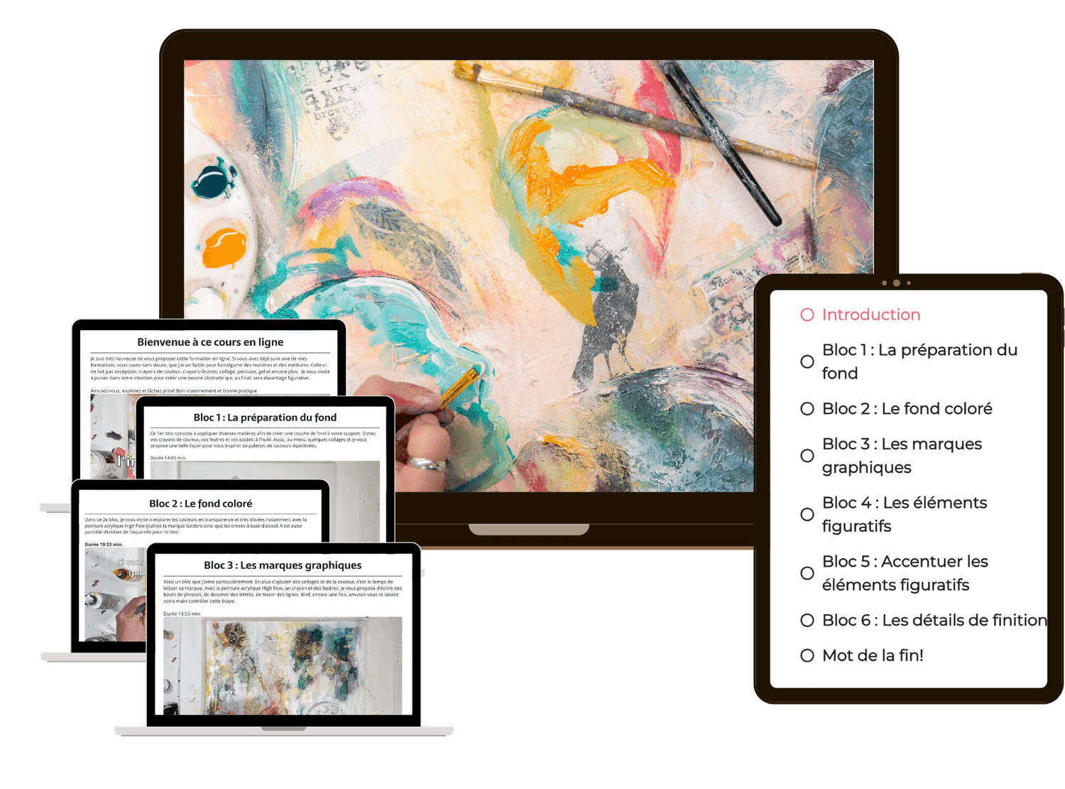 Un cours en ligne pour fusionner librement l’abstrait vers le figuratif pour une œuvre profonde et expressive.