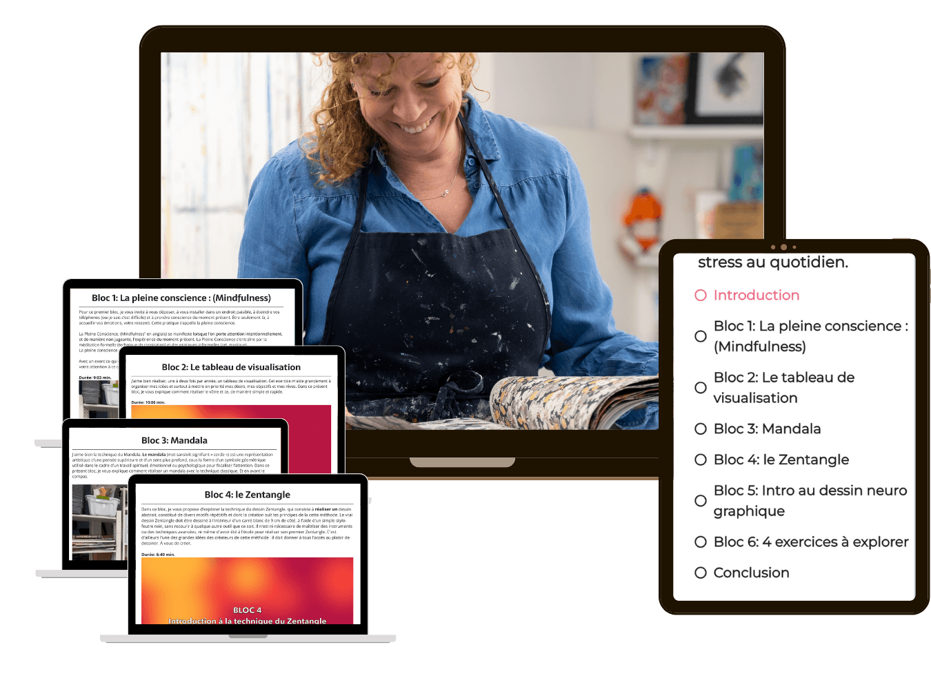 revoir à volonté. La plupart des cours en ligne incluent aussi des documents à télécharger (PDF, visuels, inspiration). Vous suivez les étapes en toute autonomie, dans le confort de votre atelier ou de votre foyer.