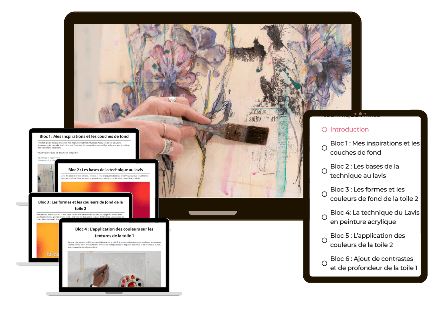 J’enseigne la peinture acrylique et les techniques mixtes à travers des ateliers en présentiel, des retraites artistiques ainsi que plus de 30 cours en ligne que je vous offre accessibles 24/7.