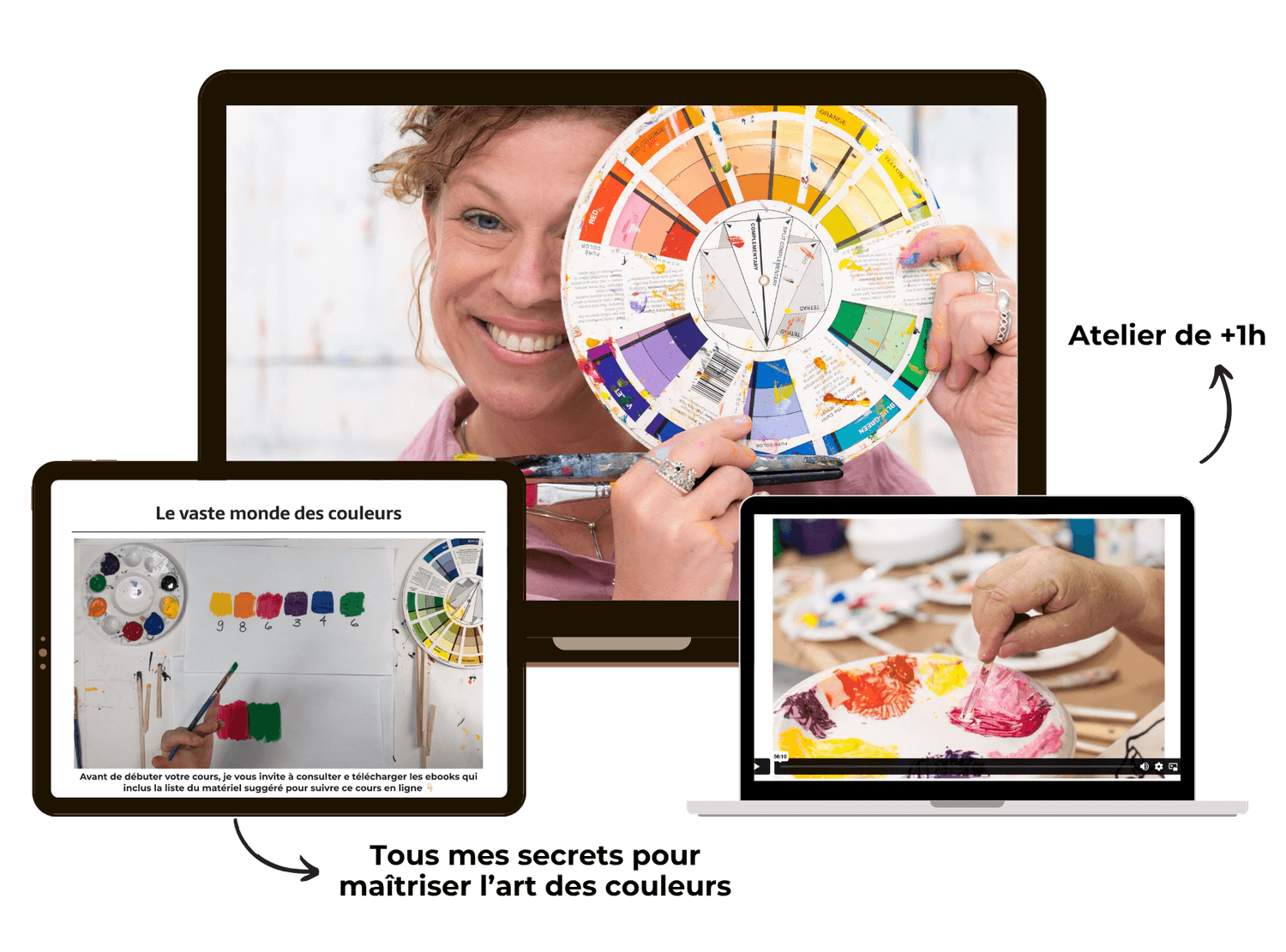 Un cours en ligne indispensable pour comprendre, combiner et maîtriser la couleur et le cercle chromatique en peinture acrylique.