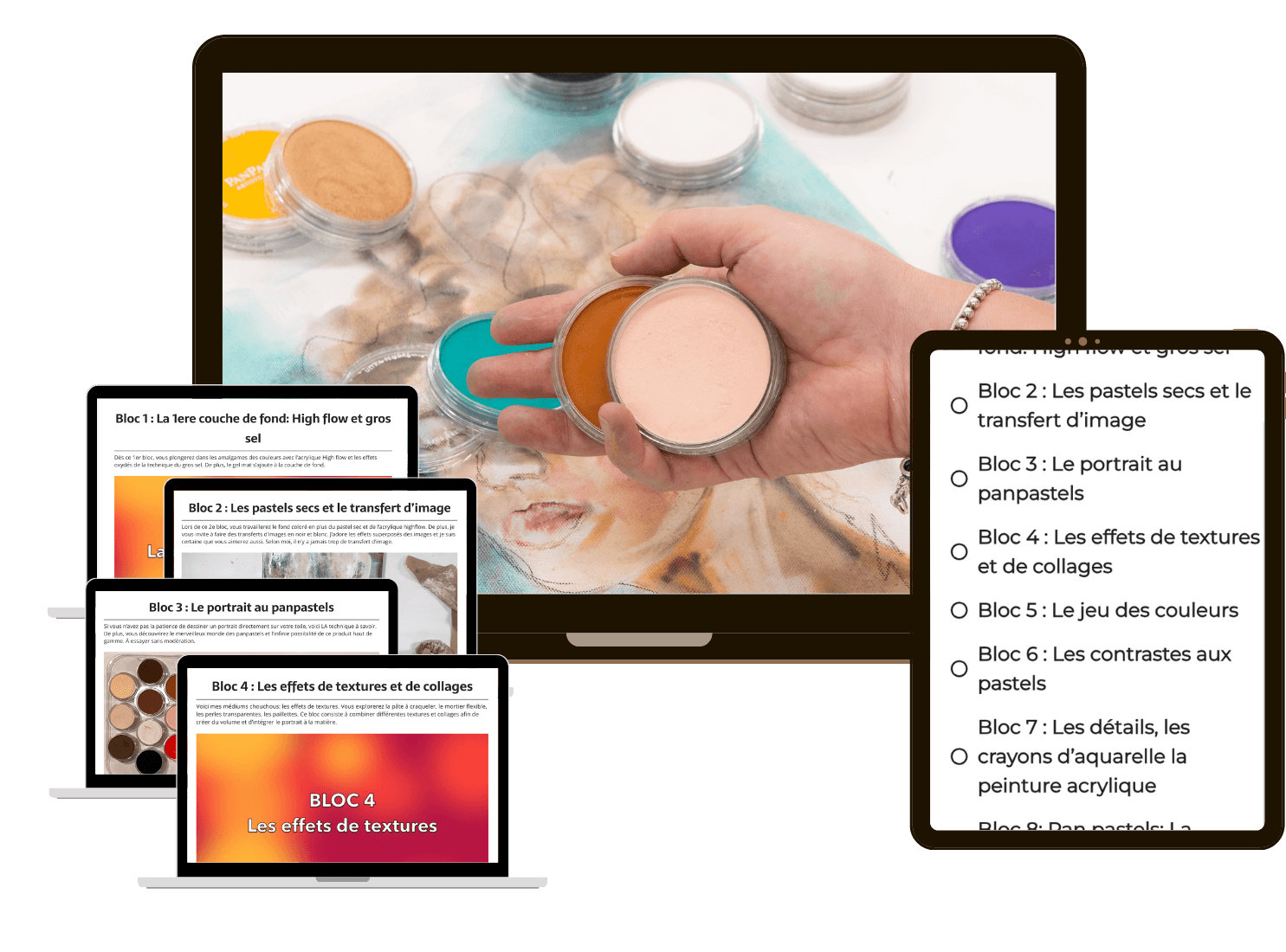 revoir à volonté. La plupart des cours en ligne incluent aussi des documents à télécharger (PDF, visuels, inspiration). Vous suivez les étapes en toute autonomie, dans le confort de votre atelier ou de votre foyer.