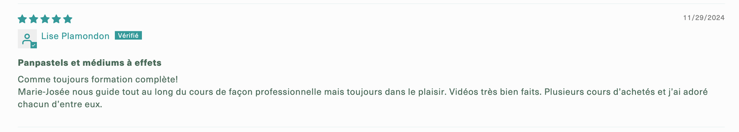 J’enseigne la peinture acrylique et les techniques mixtes à travers des ateliers en présentiel, des retraites artistiques ainsi que plus de 30 cours en ligne que je vous offre accessibles 24/7.