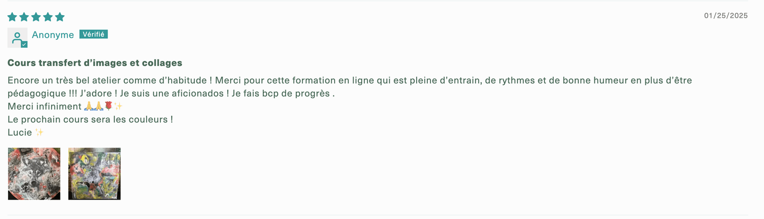 J’enseigne la peinture acrylique et les techniques mixtes à travers des ateliers en présentiel, des retraites artistiques ainsi que plus de 30 cours en ligne que je vous offre accessibles 24/7.