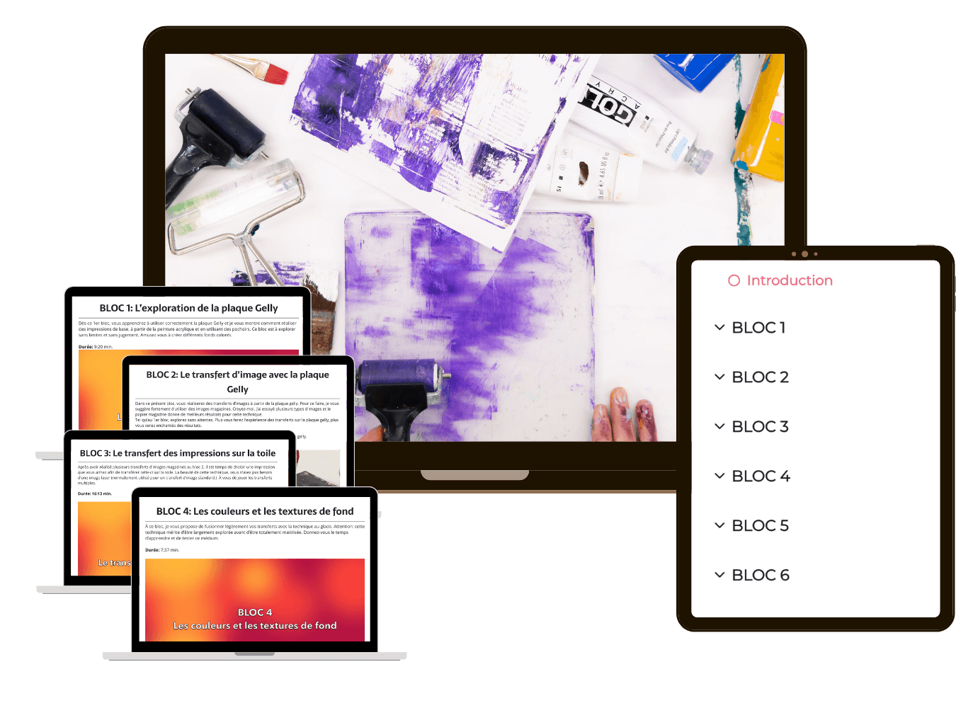 Apprends à transformer une plaque Gelly en outil magique pour des œuvres vibrantes, riches en collages, en transferts et en textures.